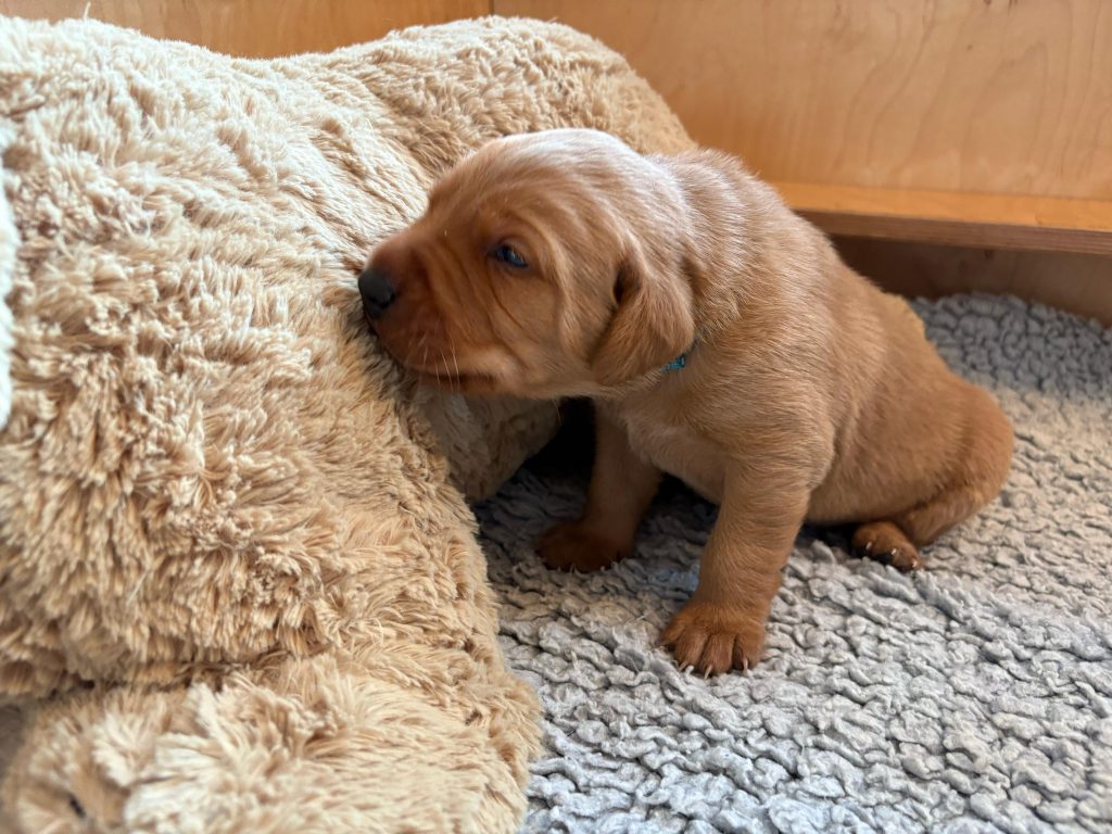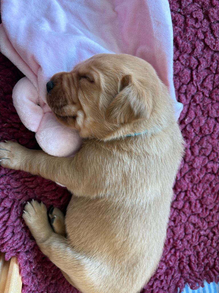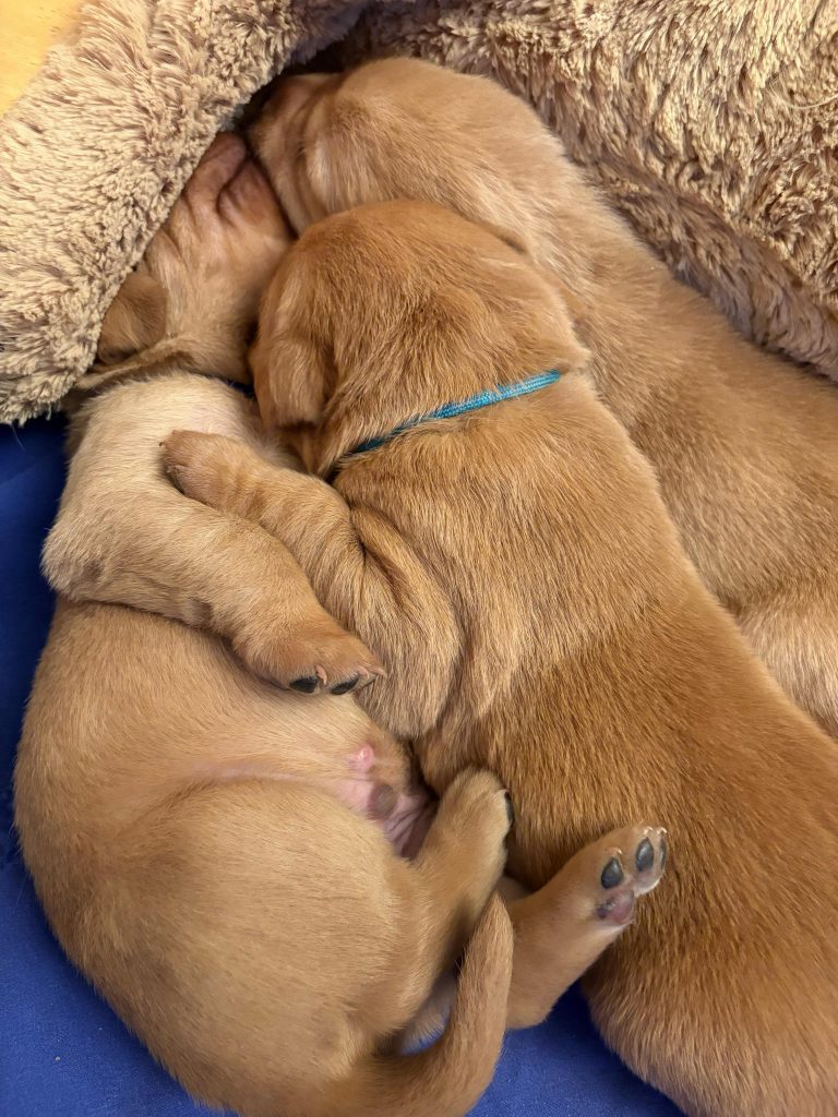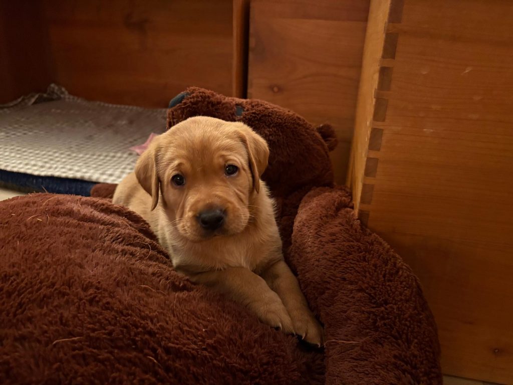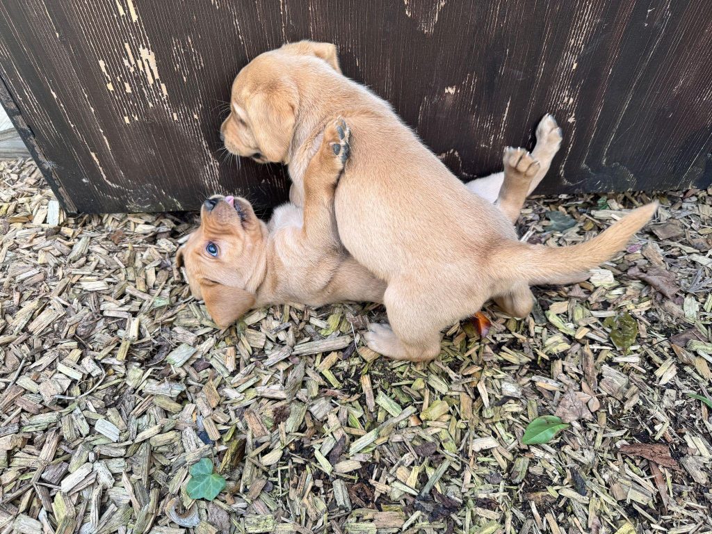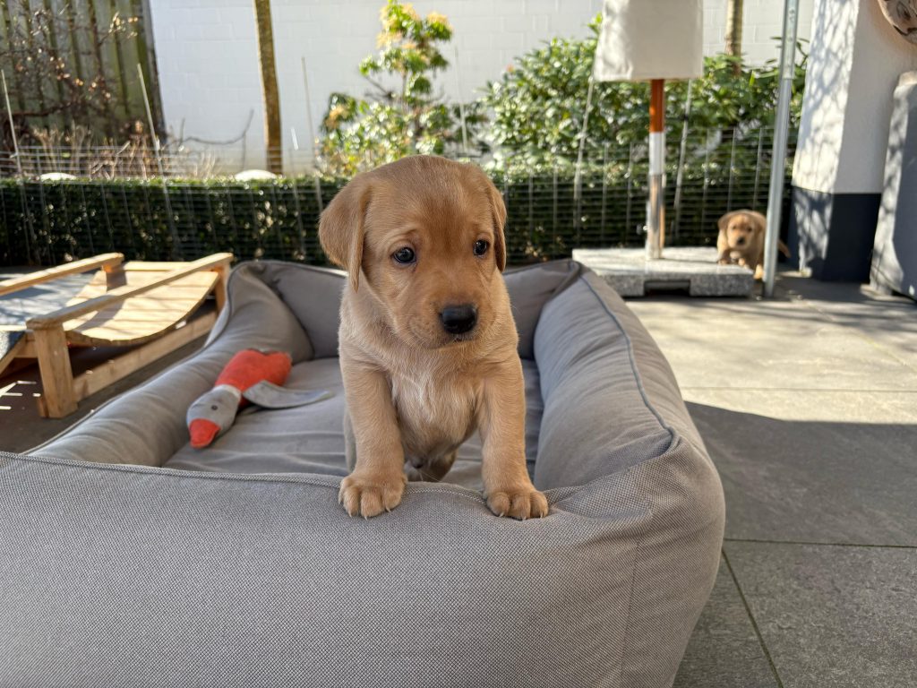 Am 11.2.2025 sind drei kräftige dunkelgelbe Rüden bei uns zur Welt gekommen. Wir sind sehr glücklich und dankbar, dass Joy und die Welpen gesund und agil sind. Calle freut sich sehr über seinen ersten Nachwuchs. Nun kommen fröhliche gemeinsame Wochen auf uns zu