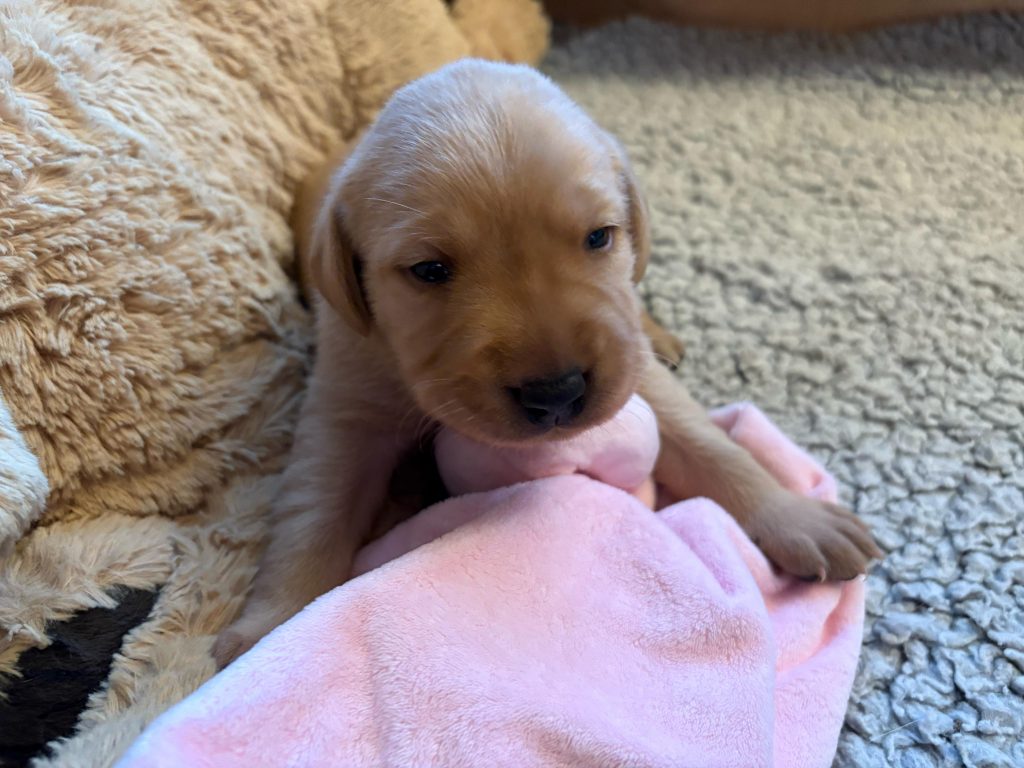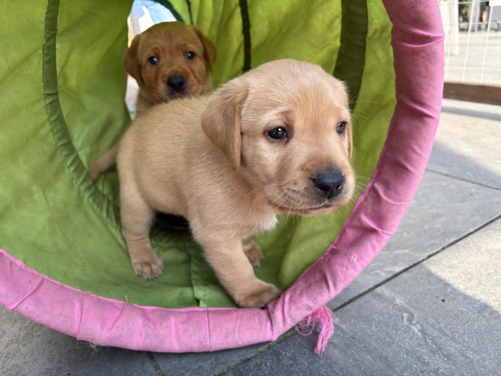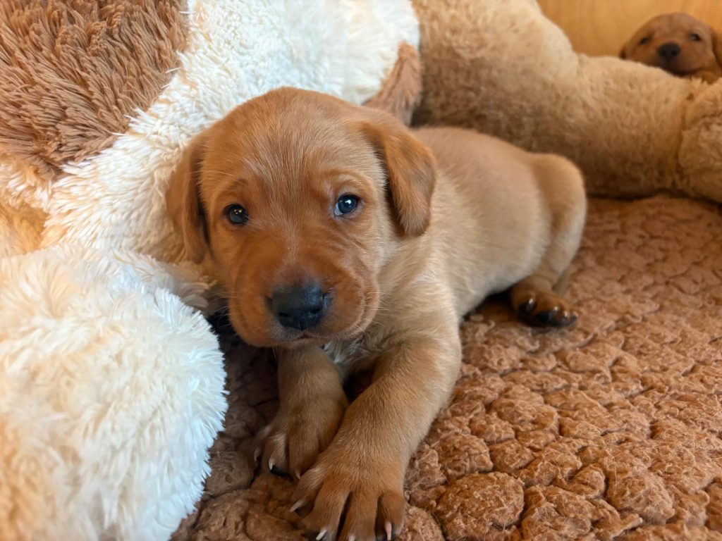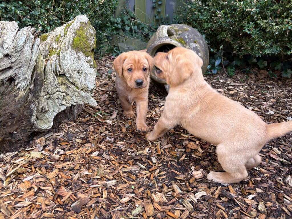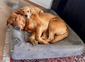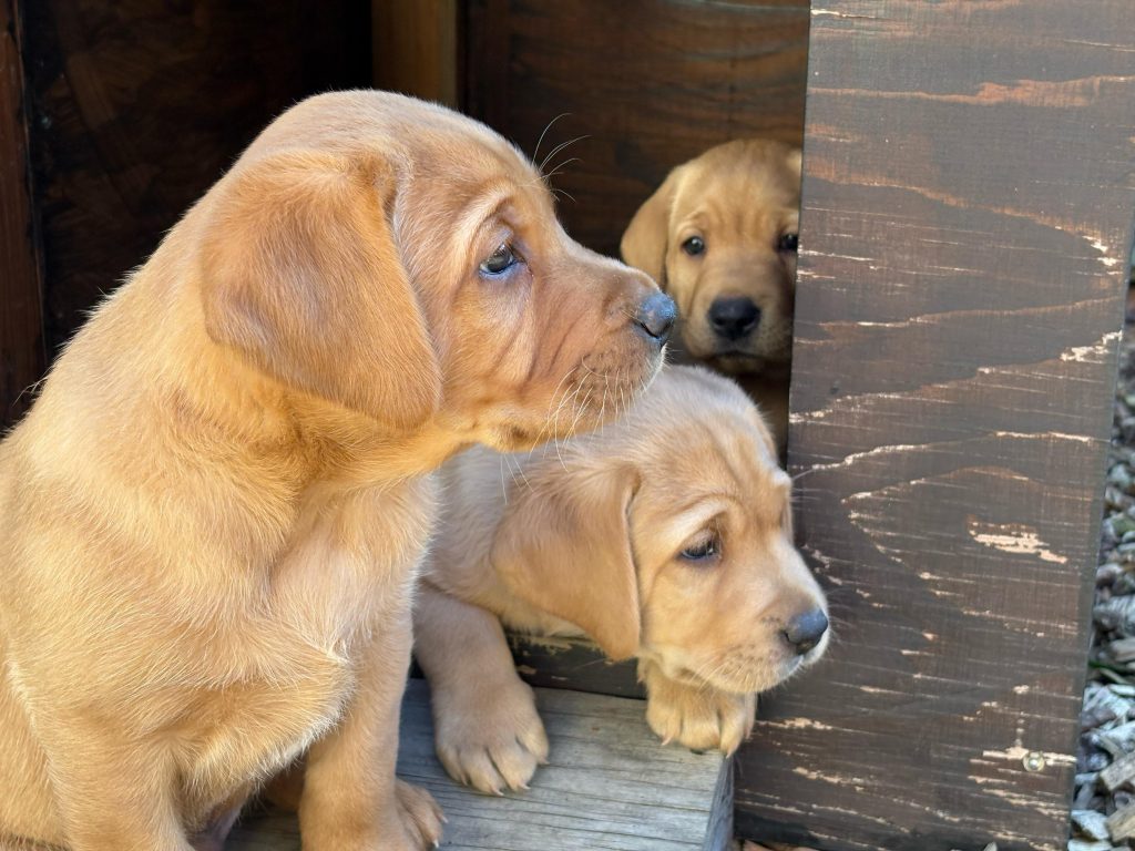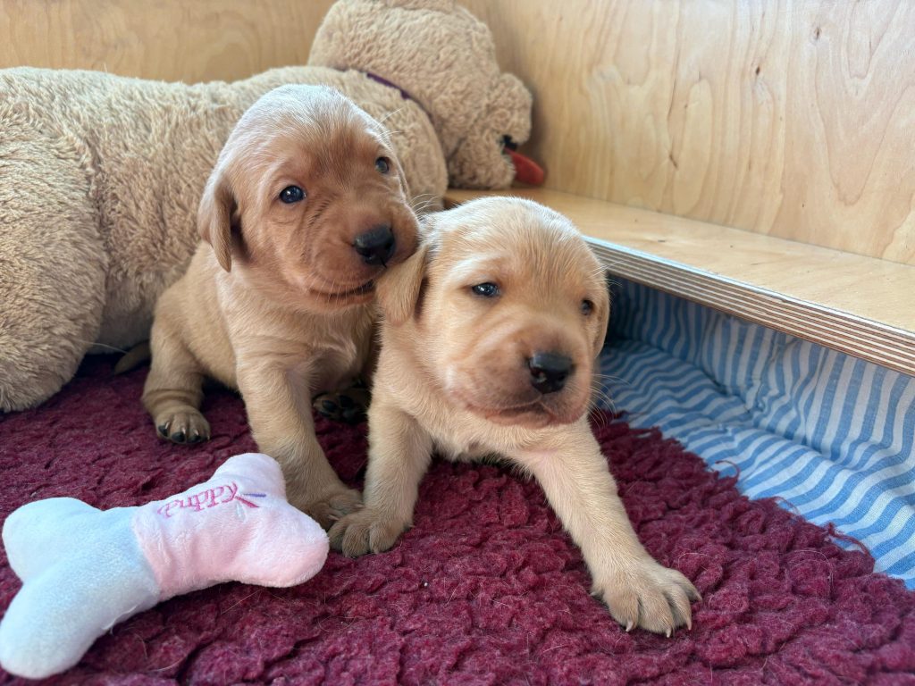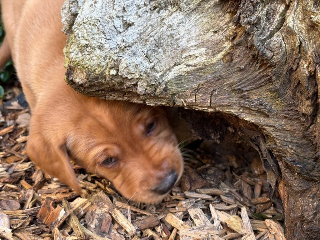Am 11.2.2025 sind drei kräftige dunkelgelbe Rüden bei uns zur Welt gekommen. Wir sind sehr glücklich und dankbar, dass Joy und die Welpen gesund und agil sind. Calle freut sich sehr über seinen ersten Nachwuchs. Nun kommen fröhliche gemeinsame Wochen auf uns zu
